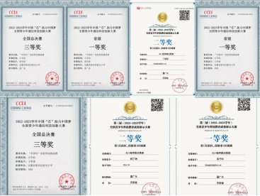 (图片描述:肥光小学信息学社团和3D打印社团参加国赛、省赛获奖证书展示)