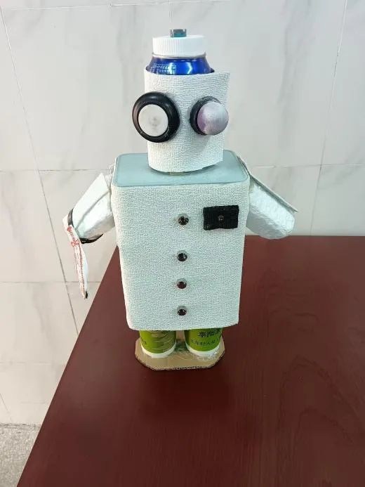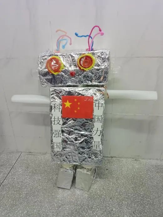 “变废为宝”比赛活动。利用废弃饮料瓶或塑料、纸盒等材料,制作超级机器人模型。