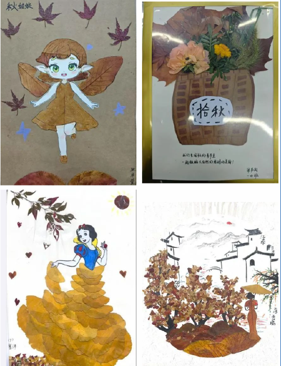 低碳生活,绿色“童”行粘贴画活动。学生在家长、老师的指导下,收集落叶、花瓣等自然材料,压平晾干;利用收集到的材料,发挥创意,通过剪贴、添画等方法制作粘贴画。