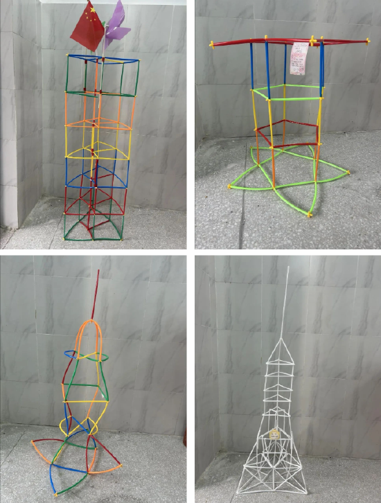 塑料吸管搭高塔,创意搭建挑战赛活动。学生自由组合,形成若干小组,既需要考虑塔高,也要兼顾到塔的稳定性、抗风性等性能,搭建期间不断尝试、调整结构。