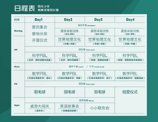 冬令营日程表