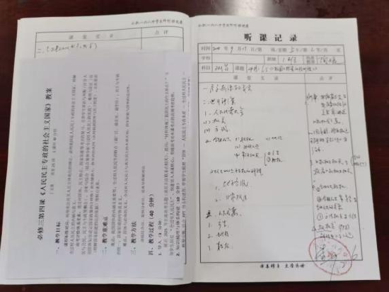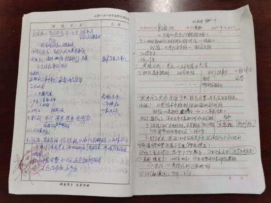在听课笔记检查中,高复教师同样展现出严谨的治学态度。教师们听课记录并非简单的流程罗列,而是对课堂细节的深度捕捉——从授课教师的教学思路、板书设计、互动方式,到学生的课堂反应、提问反馈、典型错误等,均进行了完整详实的记录。尤为突出的是,笔记中随处可见针对性的旁注,有的是对教学方法的借鉴思考,如“此处用生活实例类比抽象概念,学生理解效率显著提升,可借鉴至自身教学中”;有的是对课堂问题的优化建议,如“该知识点讲解稍显抽象,若配合动画演示或具体案例,效果或更理想”,真正实现了“听课有所思、观课有所得”,以同伴互助促进共同成长。