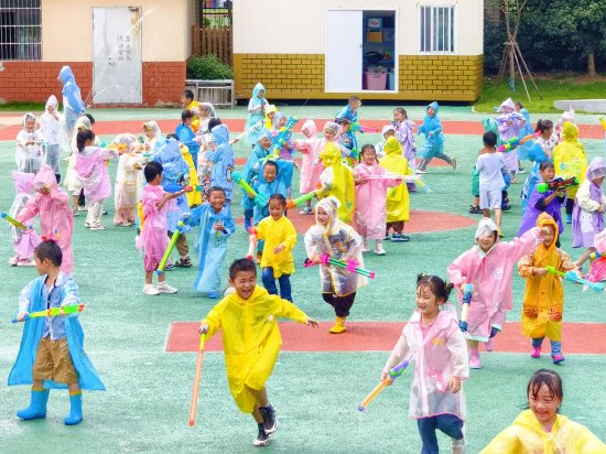 活动当天,充满童趣的“水枪大战”游戏率先点燃了全天的欢乐。幼儿换上雨衣雨鞋,拿起水枪,在老师的带领下投入到这场狂欢中。操场上水花四溅,欢声笑语不断,幼儿在清凉的水花里尽情享受快乐时光。活动结束后,幼儿喝着幼儿园精心熬煮的姜汤驱散凉意;老师们细心吹干幼儿的头发、换上干爽衣物,用细致呵护让他们舒适迎接毕业典礼。