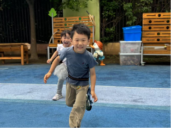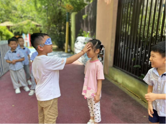 本次《童韵 扎染》主题活动围绕玩色体验、扎染•初了解、扎染•初体验、扎染•再体验、扎染•趣无穷五大板块开展,在亲身操作与体验中提升感受美、鉴赏美和创造美的能力。在玩色体验中,孩子们通过亲身操作,直接感知水彩笔与纸巾碰撞后的魅力,孩子们的操作是随意而又释放的,在操作过程中体验染色的美;在“扎染·初了解”中,幼儿设计图案、尝试扎染,聚焦“皮筋扎不紧”“布不会折”等问题,共同探索解决方法,学习橡皮筋扎结技巧,体验不同材料组合的扎染效果。孩子们能够根据自己前期的学习经验发现新的扎染工具,根据自己的喜好,进行实践操作,发现不同的材料和工具,创造出不同的图案,尝试用多种工具组合的方式,创造出更多可变的花样。“扎染·趣无穷”板块则是涵盖“绘扎染”、“跳跃的舞者”“小小设计师”“创意玩扎染”等主题活动,以及丢手绢、揪尾巴、蒙眼摸人等传统游戏。活动中,教师以观察者身份,倾听幼儿对话,及时了解其需求并提供适宜支持。
