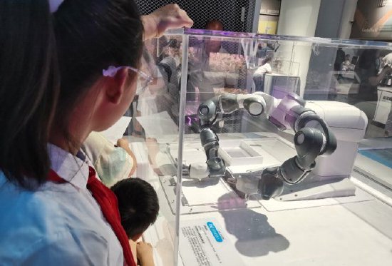 展厅内的智能机器人成为焦点。它们不仅能灵巧地折纸飞机,还能与同学们进行乒乓球互动。机器人精准的接球技术,背后是编程与传感器技术的支撑,让同学们直观感受到人工智能的强大。