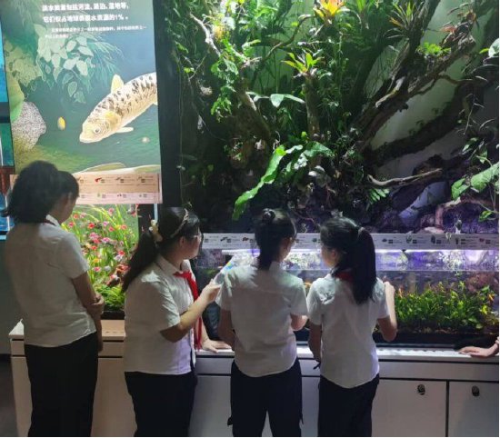 一踏入展厅,巨大的猛犸象、高加索野牛等动物模型和栩栩如生的鳄鱼捕猎场景,瞬间将同学们带入原始森林的奇妙世界。通过显微镜观察昆虫的微观结构,同学们惊叹于微小生命体的精妙设计。