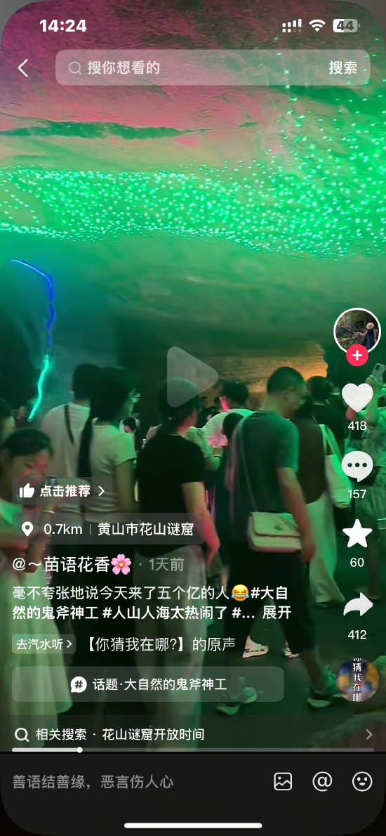 7月以来,花山谜窟“仲夏潮玩季”活动以现象级热度引爆暑期市场,景区夜游接待量单日峰值超7000人次,刷新开园以来夜游接待纪录。凭借“主流媒体权威背书+新媒体矩阵精准渗透+用户UGC自发裂变”三大举措,景区品牌声量实现爆发式增长,“清凉石窟”“仲夏潮玩”等关键词强势出圈,成为今夏黄山文旅的关注热点。