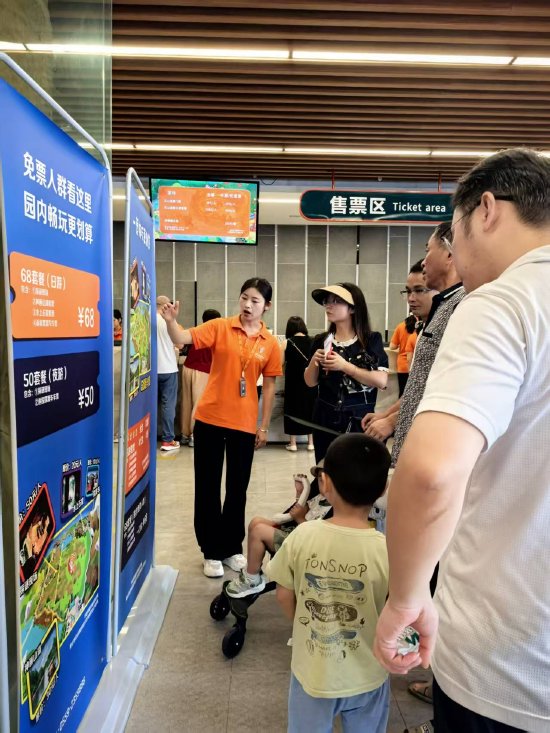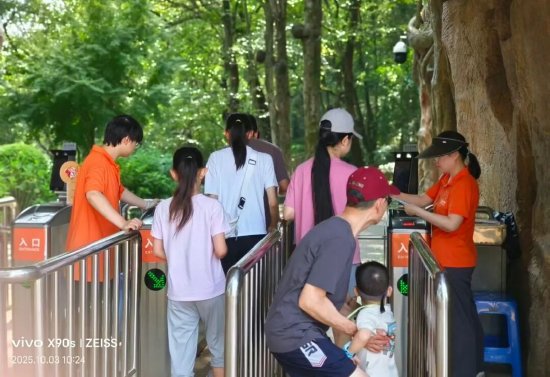 面对假期客流高峰,园区强化前置服务,让旅游更加省心。在园区出入口、游客中心等关键区域设置义务咨询台,提供购票、路线指引等服务;同时,在检票口、谜窟山谷等流量较大点位,通过“二线支援一线”的机制增派服务力量,有效保障现场秩序与游览品质。这种全员参与的“宠客”模式,让游客从入园到离场全程顺畅,塑造“无感式”贴心体验。