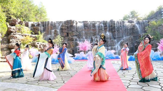 “花山国潮季·国庆狂欢周”以五大文化场景激活双节热度:白天可邂逅霓裳羽衣舞的“国风快闪”,入夜则沉浸于“龙腾鼓韵”的震撼鼓乐与“追寻花仙子”“水舞光影秀”的科技幻境,在悬湖飞瀑间声声入心,实现昼夜联动的文化盛宴。